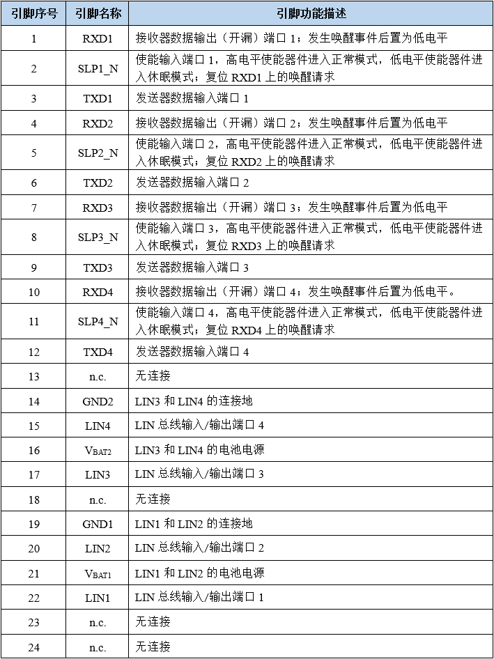 兼容“LIN 2.x/ISO 17987-4:2016 (12V)/SAE J2602”標準;