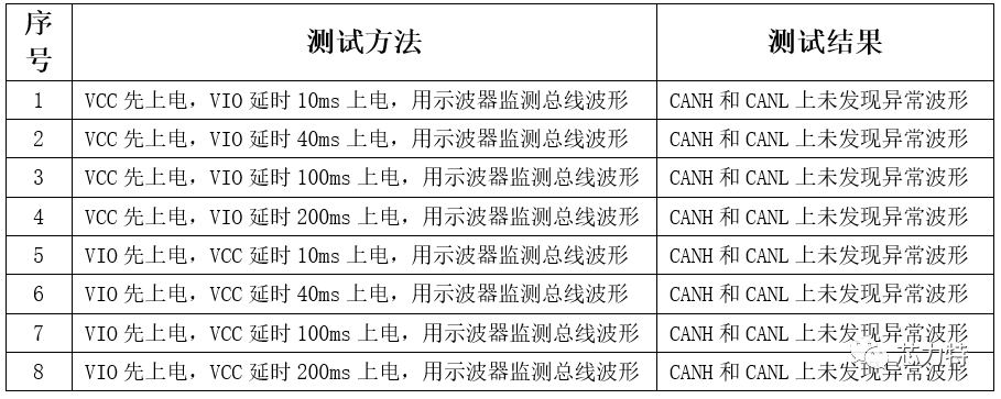 另外,當VCC與VIO不同時上電,在芯片開始工作的瞬間,SIT1051T/3也不會對總線造成干擾,具體測試如下: